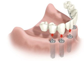 Мост на 3 зуба из диоксида циркония с креплением на титановых абатментах
