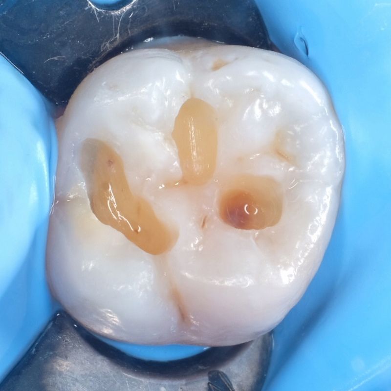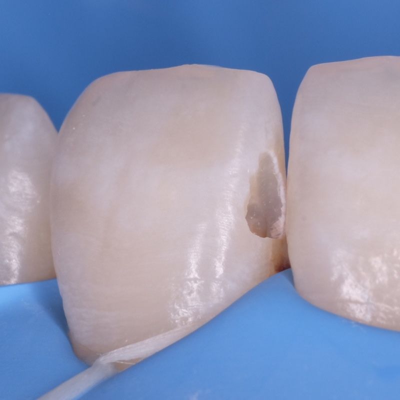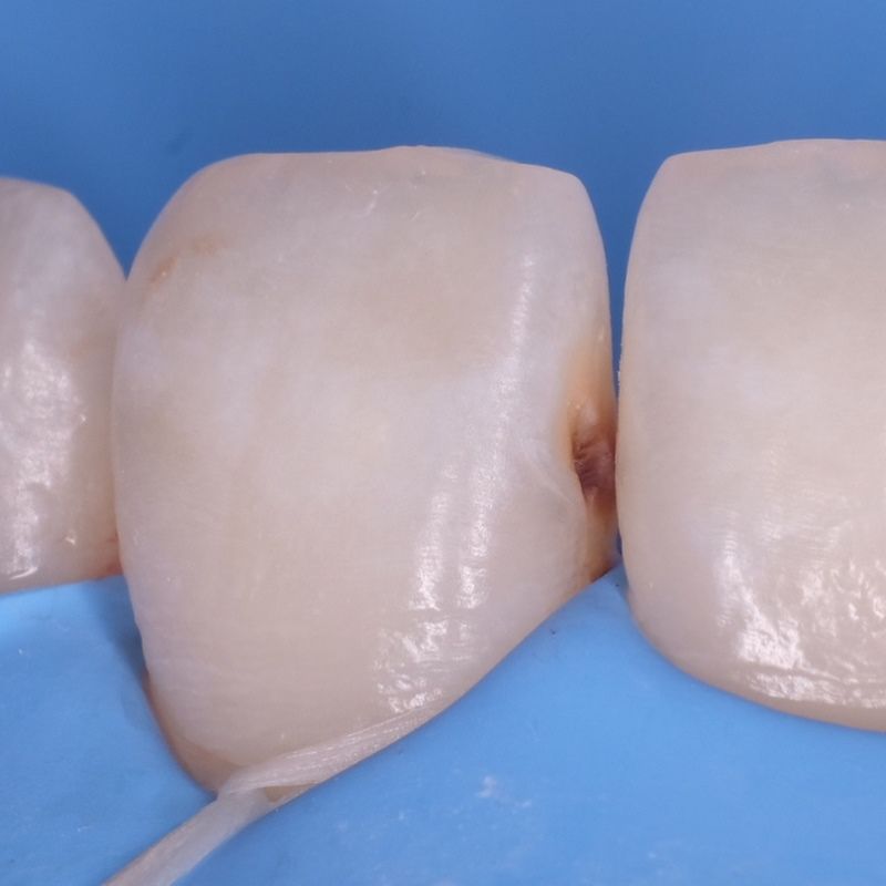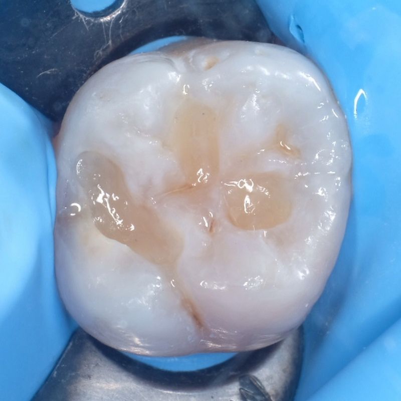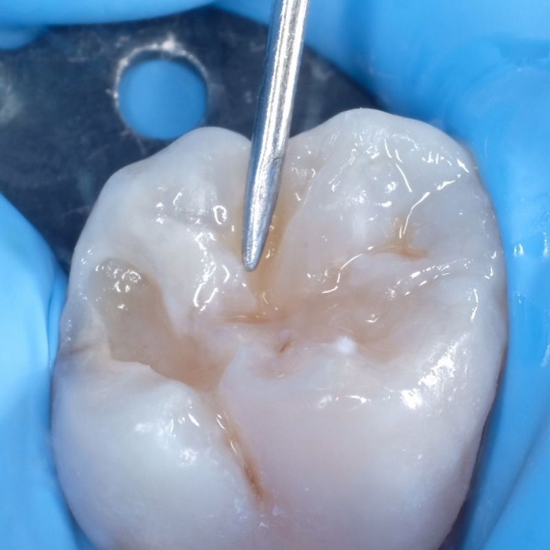 Фиссуры сами по себе имеют более темный оттенок, чем остальная поверхность эмали зуба. Это связано с тем, что они заполнены налетом, зубными бляшками, которые невозможно полностью удалить зубной щеткой, да и просто находятся в углублениях в тени бугров зуба. Все это часто маскирует фиссурный кариес и затрудняет его выявление.