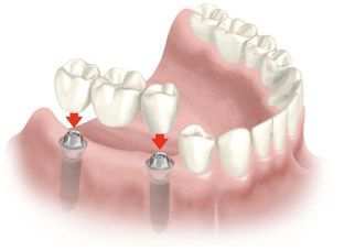 Мост на 3 зуба из диоксида циркония с креплением на титановых абатментах