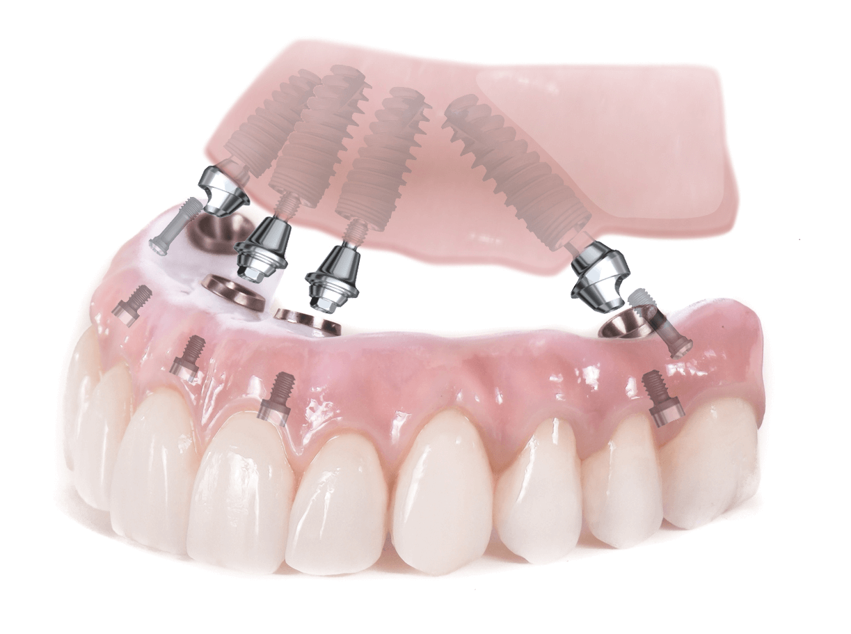 Комплексная имплантация одной челюсти с использованием 4 имплантатов системы Nobel