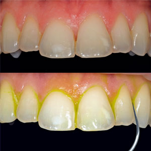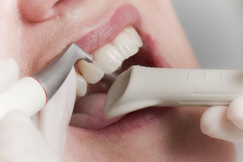 Профилактическая процедура по снятию зубных отложений и насыщению зубов кальцием и фосфатом.